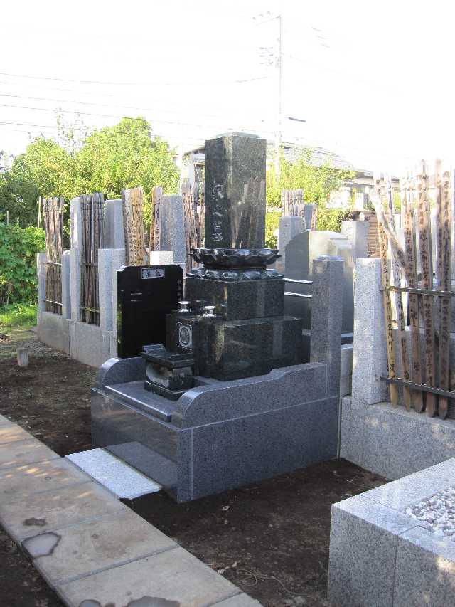 オールインド黒御影石高級型、上下蓮華、笠付塔婆立、墓誌付、バリアフリー型 -
